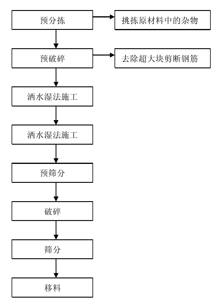 應(yīng)用于公路路基工程的建筑垃圾主要是指拆除物中的混凝土塊、磚塊、砂漿塊、陶瓷、玻璃以及由這些成分所產(chǎn)生的細(xì)料。由于建筑垃圾中所含成分非常復(fù)雜,含有大量不利于公路工程質(zhì)量的雜物如木塊、塑料制品、棉布、泡沫等有機(jī)輕質(zhì)材料,并不是能全部應(yīng)用與公路工程,而且建筑垃圾的顆粒組成極不均勻,有大量超大粒徑顆粒存在,不利于公路路基的壓實(shí)。所以在建筑垃圾利用到公路工程之前需要對(duì)其進(jìn)行加工。